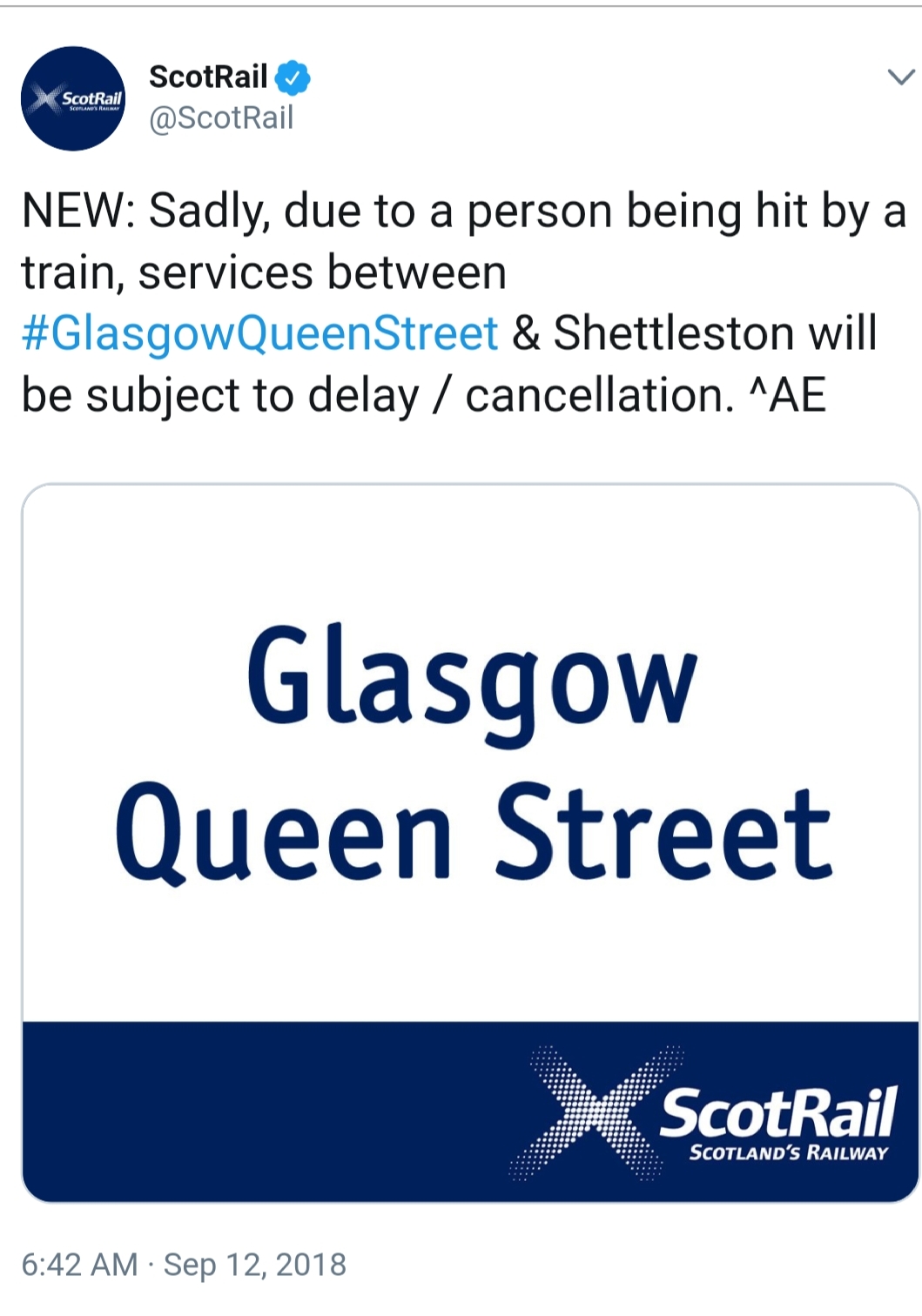 Published September 12, 2018 at 1059 × 1512 in Train hits person near Queen Street Station in Glasgow, Services disrupted until noon ‹ Return to post Leave a comment Cancel reply Δ