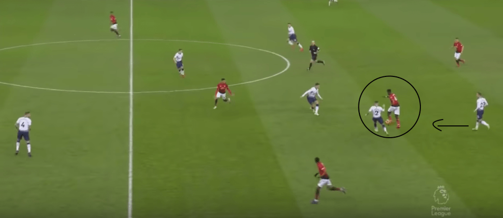 Unlike Pochettino, Solskjaer was reactionary. As soon as Spurs subbed on Fernando Llorente, the Norwegian opted to bring on Diogo Dalot as a second right-back in order to double up and stop the crosses, therefore eliminating Llorente’s aerial threat.
