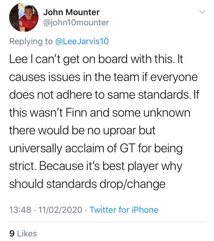 ‘It’s unacceptable for a player to walk out on a group. We can’t cut corners on things like this.’