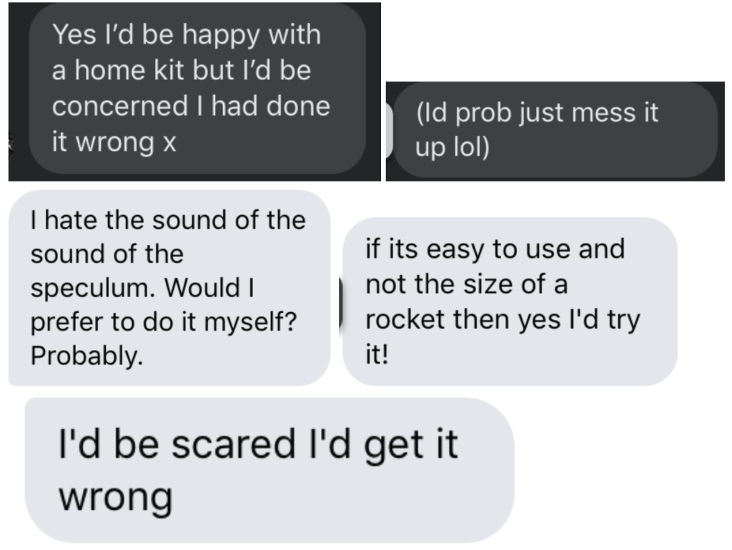 When asked if they would be happy to use a self test kit our facebook respondents answered overwhelmingly yes but had worries about the efficacy of ‘doing it themselves’.