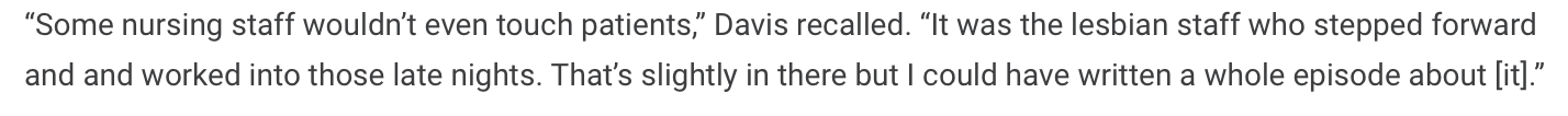 In these early years of the crisis lesbians were at the forefront of patient care.
