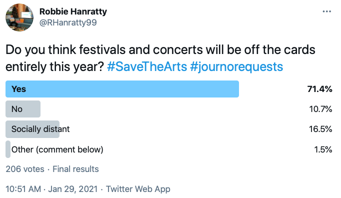 The majority of respondents to our Twitter poll certainly think so. With many commenting saying that they have loads of concerts rescheduled to this year with very little optimism that they will go ahead.